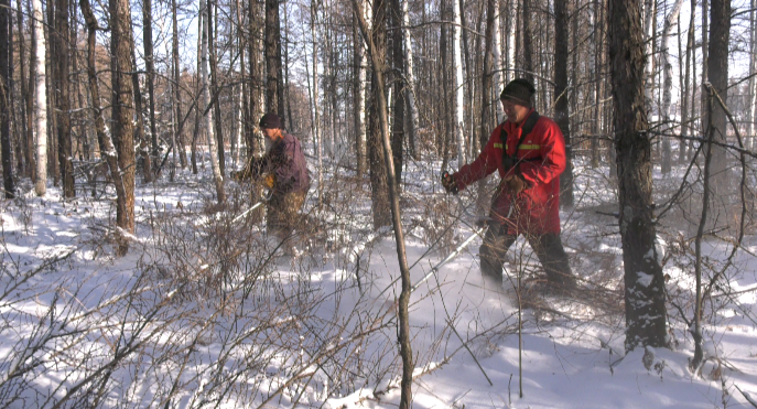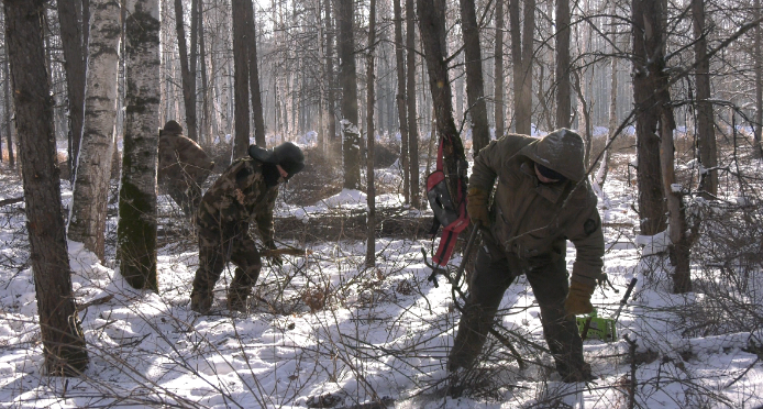 隆冬时节,寒风刺骨。清晨,万籁俱寂,通北林业局有限公司双胜林场69林班的森林抚育队伍已经向山林进发。近两个小时步行跋涉后,队伍到达林班小号作业区。清理枯枝、截断倒木、码堆成带……嗡嗡的电机声响打破了林间的寂静,新一天的森林抚育工作正式开启。