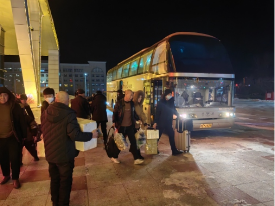 “我们到家了!”2月3日18时,从青岛出发的满载84人的2辆客运专车,行程1680公里到达终点站——桦南。