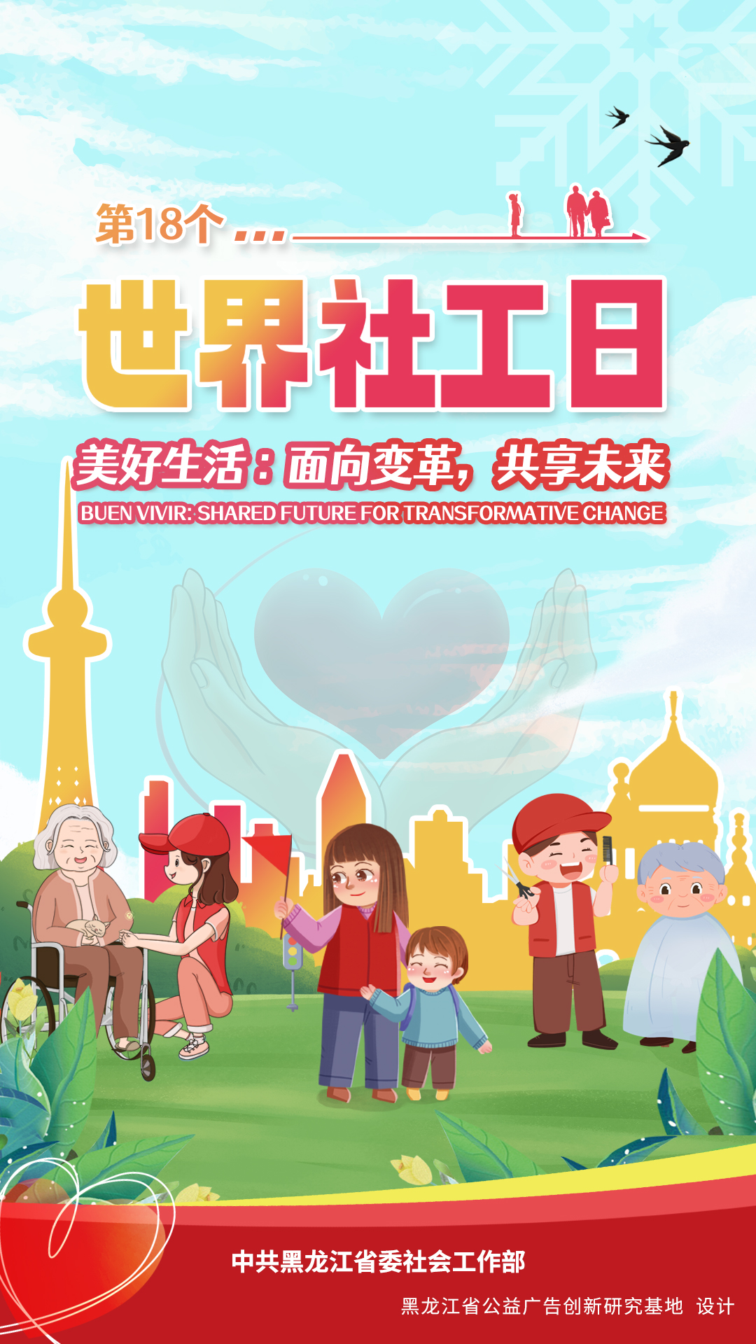 3月19日是第18个世界社会工作日,本届主题是“美好生活:面向变革,共享未来”。期间,黑龙江省委社会工作部向全省社会工作者发出公开信,致以节日问候并发出倡议。