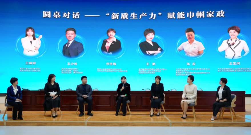 日前,大庆市妇女联合会邀请省内外知名家政企业管理者、专家学者等6名嘉宾,围绕“‘新质生产力’赋能巾帼家政”展开圆桌对话,深入探讨巾帼家政如何谋“新”提“质”,为大庆巾帼家政把握变革趋势,推进产业创新,实现高质量发展牵引赋能。会场内,嘉宾碰撞思想、分享观点,会场外,巾帼家庭服务职业技能大赛同步开赛。职业经理人、未来家政店长两个全新项目,吸引了黑龙江省水利学校护理专业24位05后在校生。6个项目,132名参赛选手,80、90、00后占比超过80%,家政“赛道”成了年轻人的竞技场。