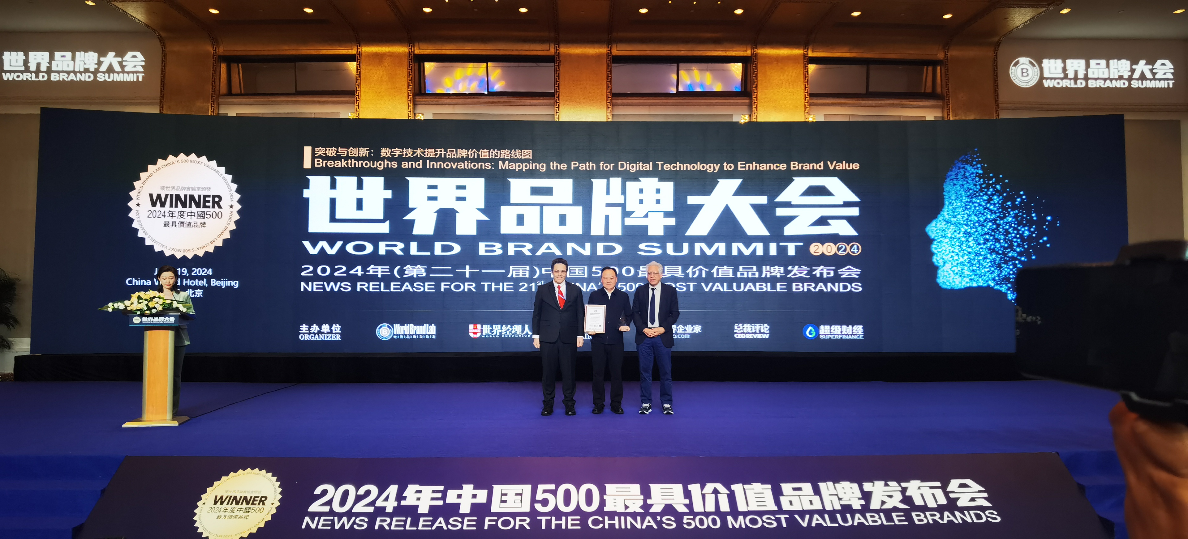 6月19日,由世界品牌实验室(World Brand Lab)主办的“世界品牌大会”2024年(第二十一届)中国500最具价值品牌发布会在北京举行。