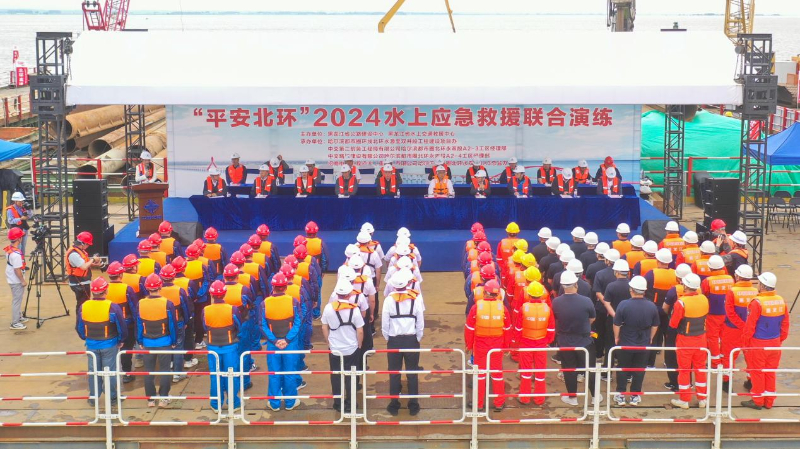 新华网哈尔滨6月23日电(记者董宝森)日前,由黑龙江省公路建设中心、黑龙江省水上救援中心主办,北环项目办、招商中宇JA3总监办、中交二航局A2—3工区、中交路建A2—4工区承办的“平安北环”2024水上应急救援联合演练活动在松花江特大桥主航道桥施工平台举行。