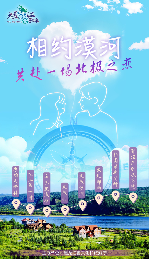 “大美龙江等你来”融媒互动主题活动由黑龙江省文化和旅游厅主办。此次“相约漠河——共赴北极寻爱之旅”活动面向全国征集情侣游客成为旅游体验官,与我们一起共赴漠河,打卡这座北国浪漫之都。