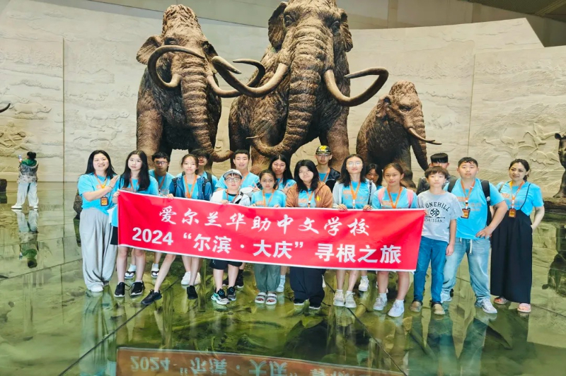 在大庆期间,来自爱尔兰的20名华裔青少年参加了一系列中国特色文化活动。探寻了中华民族的文化根脉,品尝了地道的大庆美食,品味了东北独特的饮食文化,深入了解了大庆的石油文化和红色历史。 铁人王进喜纪念馆里,大家跟随一段段生动的讲解,透过一件件珍贵的文物、一张张鲜活的老照片“走近”铁人,聆听那个火热年代的拼搏故事。 走进大庆博物馆,华裔青少年们见识了“镇馆之宝”——国内最完整的猛犸象化石。知晓了野牛的头骨化石竟然有这么多不同形状。 来到百湖艺术群落,大家学做了芦苇画、冰雪画,直观感知非遗的魅力。