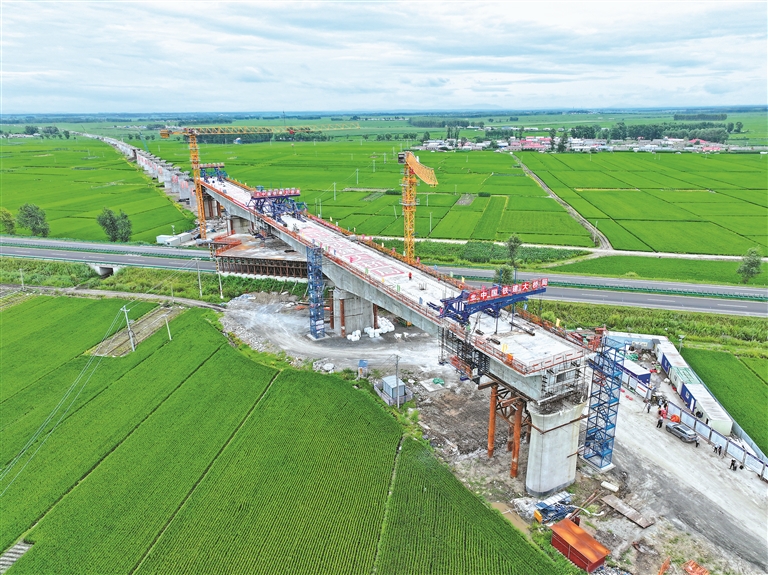 新建哈尔滨至铁力铁路站前工程五标段线路位于黑龙江省庆安县、铁力市境内。正线长度44.125千米,路基线路2.612千米,桥梁全长41.513千米,包括两座特大桥,庆安安邦河特大桥就是其一。(记者王迪)