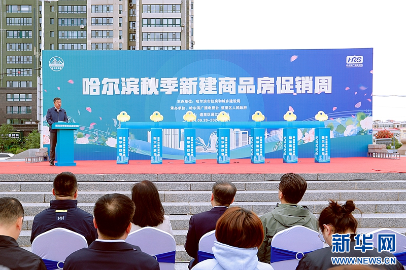 9月20日至27日,由哈尔滨市住房和城乡建设局主办,哈尔滨广播电视台、道里区人民政府承办的“哈尔滨秋季新建商品房促销周”活动20日在道里区通江街广场启幕。