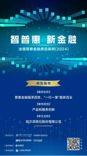 12月2日,“智普惠 新金融——2024中小企业金融论坛暨普惠金融创新发展研讨会”在北京圆满召开,会上揭晓了“全国普惠金融典型案例(2024)”入围名单,哈尔滨银行“普惠金融福泽百姓,‘一行一策’服务百业”成功入选“普惠金融产品与服务创新案例”。