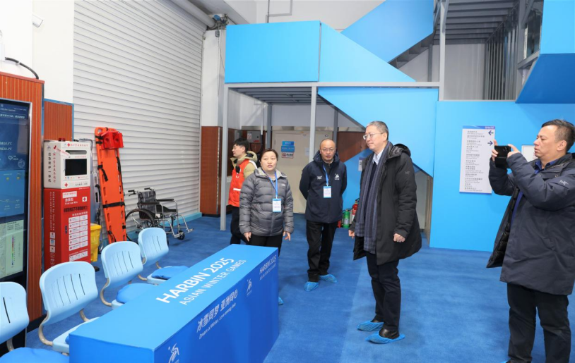 孙备一行先后来到冰球馆、综合馆、速滑馆、冰壶馆、开闭幕式场馆和冰上项目运动员村诊所,检查医疗物资、人员配备、药物管理、诊疗流程、患者转运、应急演练等工作。孙备指出,大家要强化大局意识、担当意识,坚持以运动员为中心,服务赛事需要,选配思想好、技术好、态度好、外语好、形象好的“五好”医生,持续提升应急反应速度和综合救治能力,为亚冬会的成功举办提供医疗保障。