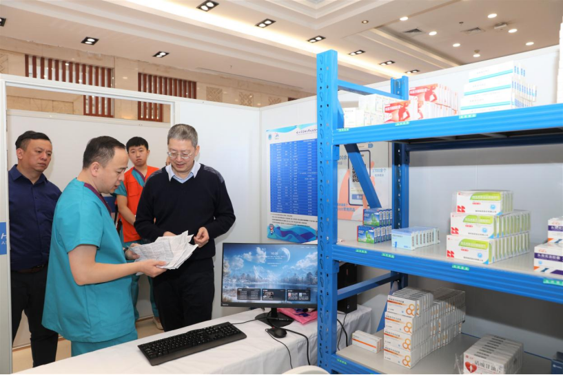 孙备在冰上项目运动员村诊所检查药品管理流程。