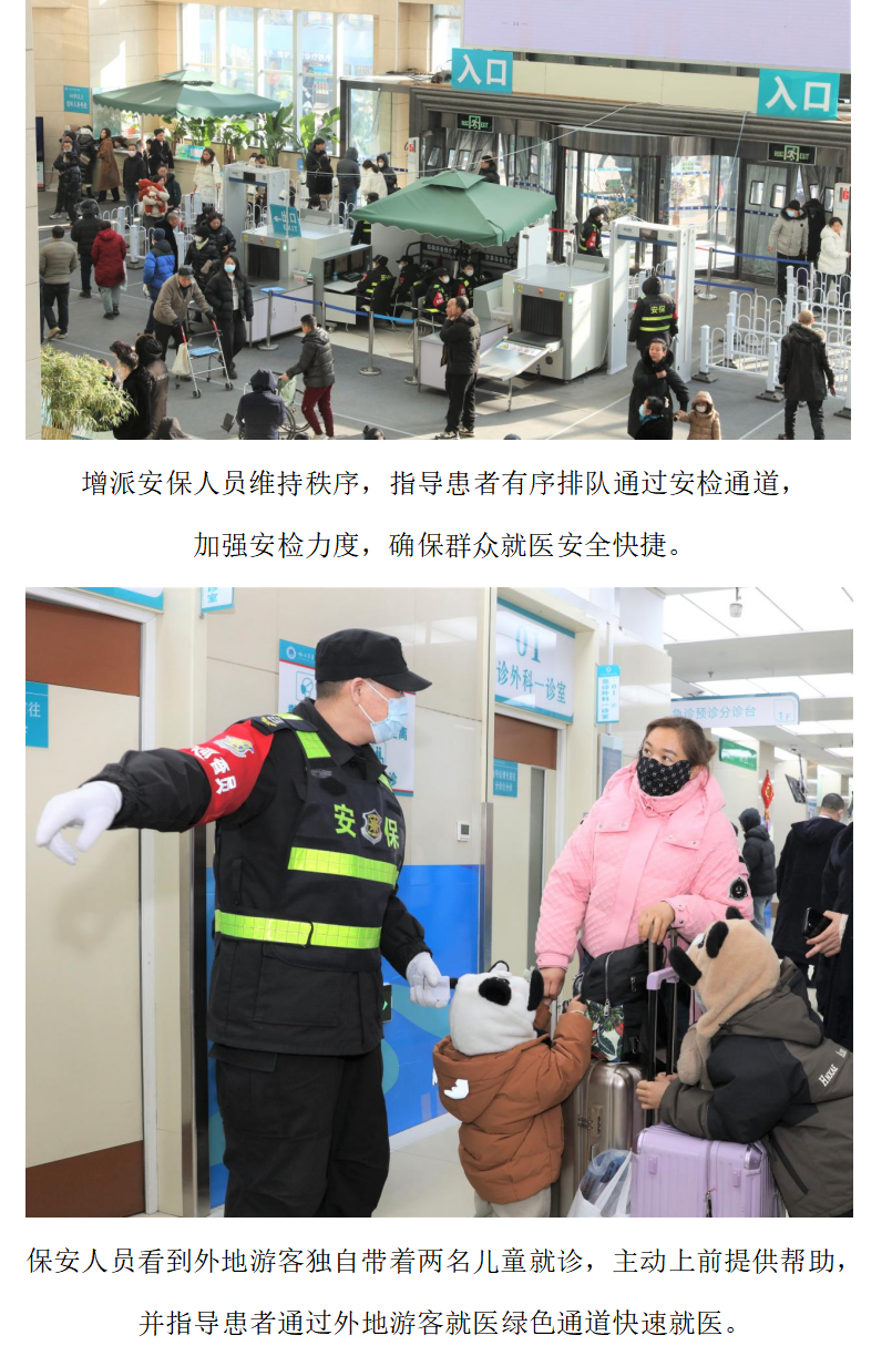 面对节后首日的就诊高峰,各职能部门人员各司其职、紧密配合、主动服务,用“全院一盘棋”的协作,为医院的正常运转提供了坚实的保障。安保人员值守医院各处,加强巡查,细致把关,确保患者安全就诊;保洁人员认真做好清洁消毒,确保患者在整洁、安心的环境中接受诊疗服务......哈医大一院人忙碌的身影穿梭在医院的各个角落,以饱满的热情和昂扬的斗志,为患者们带来了温暖和希望。