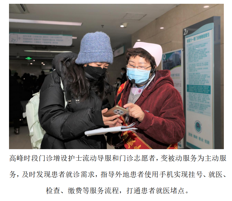 为应对患者就诊高峰,哈医大一院坚持“一切以患者为中心”,动态调整出诊医生及号源数量,增加门诊出诊医生数量,上调专家号源数量,满足龙江百姓高品质医疗服务需求。