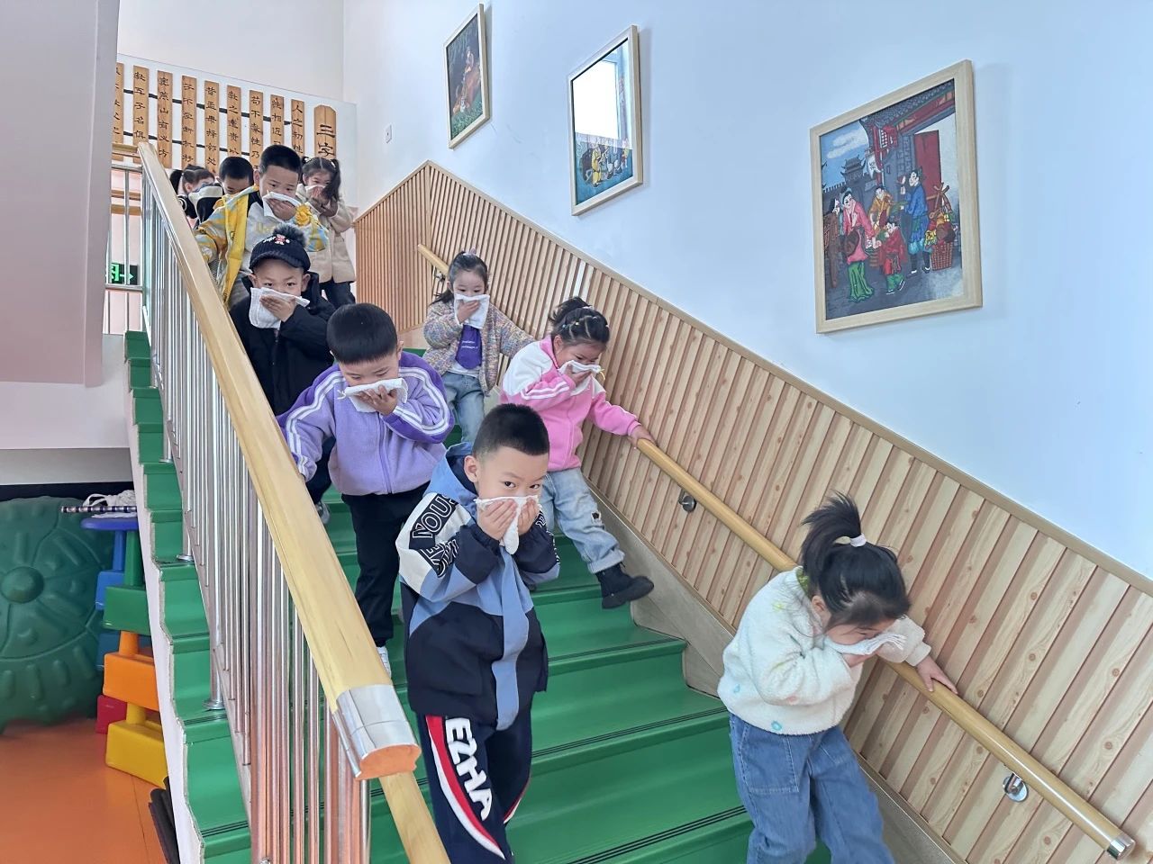 演练前,七星农场有限公司第二幼儿园结合实际制定详实的消防演练方案,细化要求,明确各岗位的职责和任务。各班教师通过故事、儿歌、视频等方式,向孩子们讲解火灾的危害、预防方法以及火灾发生时的逃生技巧。随着消防疏散警报响起,各班教师按照演习预案的疏散路线,组织幼儿拿起湿毛巾捂住口鼻,弯腰小步快走,沿安全通道紧急疏散,3分钟内有序撤离到安全地带,随即迅速维持秩序,清点人数并上报。疏散引导小组及时巡视教学楼各个角落,检查无遗漏人员后,立即撤离到安全地带。整个疏散演练过程既紧张又有条不紊,做到了快速、安全、有序。