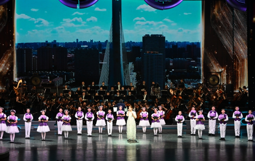 开幕式上,一场由哈尔滨市与保利文化集团联袂打造、著名指挥家汤沐海执棒的艺术盛宴震撼上演。演出由北京保利文化集团艺术总监周涛担任总导演,分为“乐满丁香咏芳华”“情寄丹心颂山河”“和合万象谱新章”三个华美篇章,汇聚了哈尔滨交响乐团、哈尔滨芭蕾舞团、哈尔滨歌剧院合唱团、哈尔滨音乐学院合唱团等专业院团的百余位表演者。著名歌唱家殷秀梅、吕继宏、陈思思、郭蓉、尤泓斐,著名表演艺术家王刚,哈尔滨籍歌手孙悦等倾情献艺。演出高潮之一是原创音乐剧《夜幕下的哈尔滨》片段的首次公开展演,浓郁的地域特色和精湛的艺术呈现赢得现场经久不息的掌声。整场演出融合交响乐、芭蕾舞、声乐、戏剧等多种艺术形式,气势恢宏、精彩纷呈,淋漓尽致地展现了哈尔滨深厚的艺术积淀和开放包容的城市气质,为与会嘉宾和观众带来了一场难忘的视听盛宴。