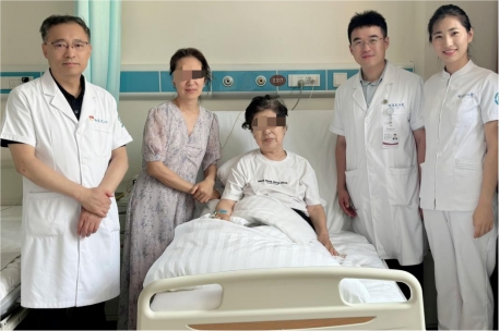出院前,患者和家人与医护人员合影。