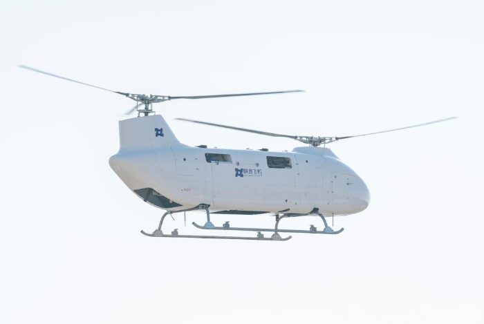 10月30日,在哈尔滨市平房区,一架大载重纵列式无人直升机平稳升空,完成悬停、航线飞行、精准降落等动作,这是联合飞机集团旗下哈尔滨联合飞机科技有限公司研发制造的铂影T1400无人直升机首航成功的场景。