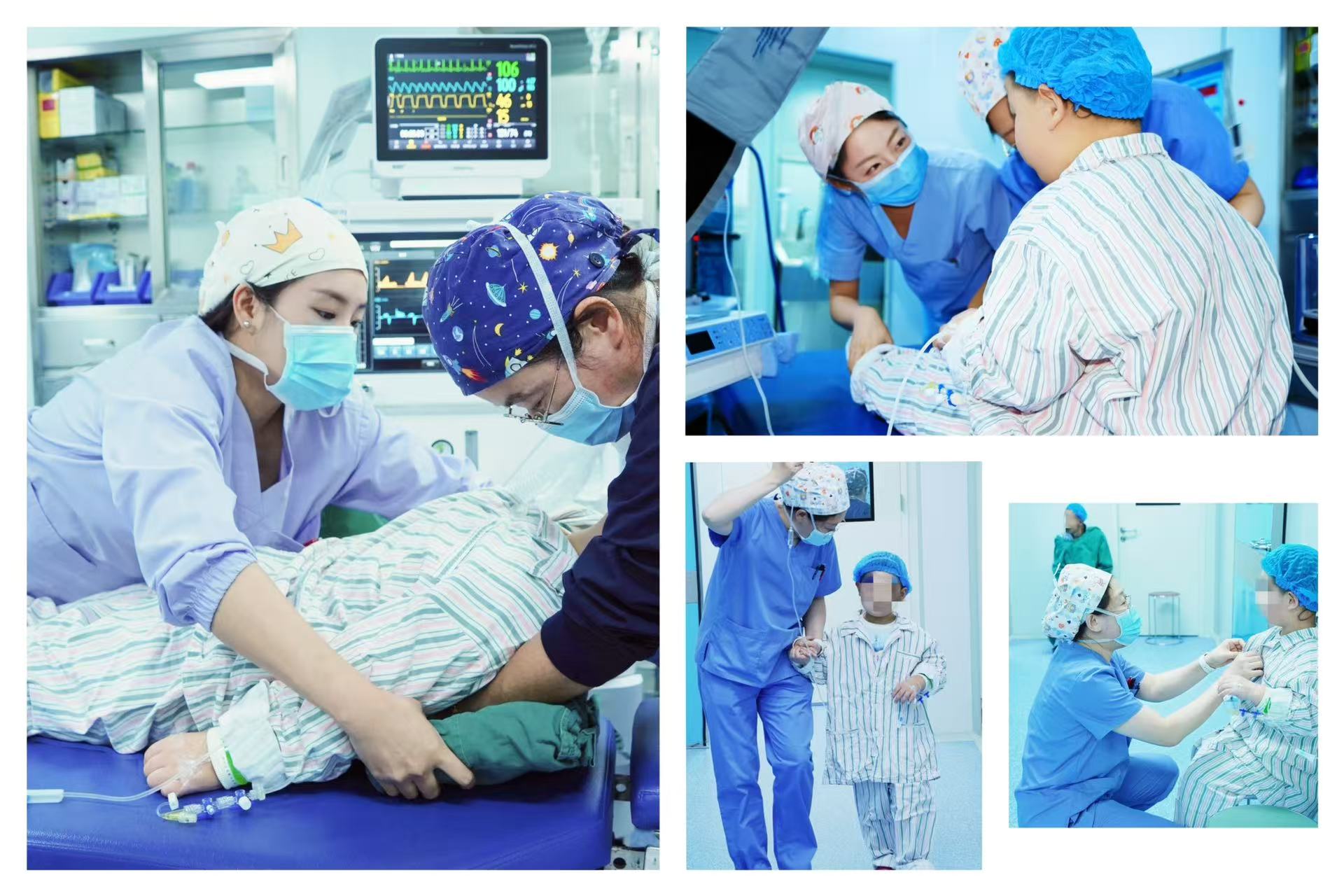 一切准备就绪后,崔海滨团队为患儿实施了“气体喉罩麻醉下白内障超声乳化吸除+人工晶体植入术”。手术团队操作精准娴熟,仅用时不足五分钟,便成功将混浊的晶体乳化吸出,并植入了合适度数的人工晶体。