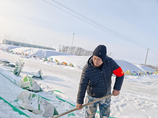 在粮食存储关键环节,勤得利农场严格执行昼夜轮班制度,加强日常巡查与重点管控,实时监测粮食水分、温度等指标,确保存储状态稳定;针对降雪天气,及时调配清雪机械,对晒场及周边主干道路开展除雪作业,保障粮食转运通道畅通。以第十一管理区为例,工作人员每日精准检测存储粮食水分、温度,建立详细数据台账,为种植户提供倒堆、通风、晾晒等科学指导;包片农业技术员加密巡查频次,排查粮堆苫盖、防潮铺设情况,发现问题立即整改。