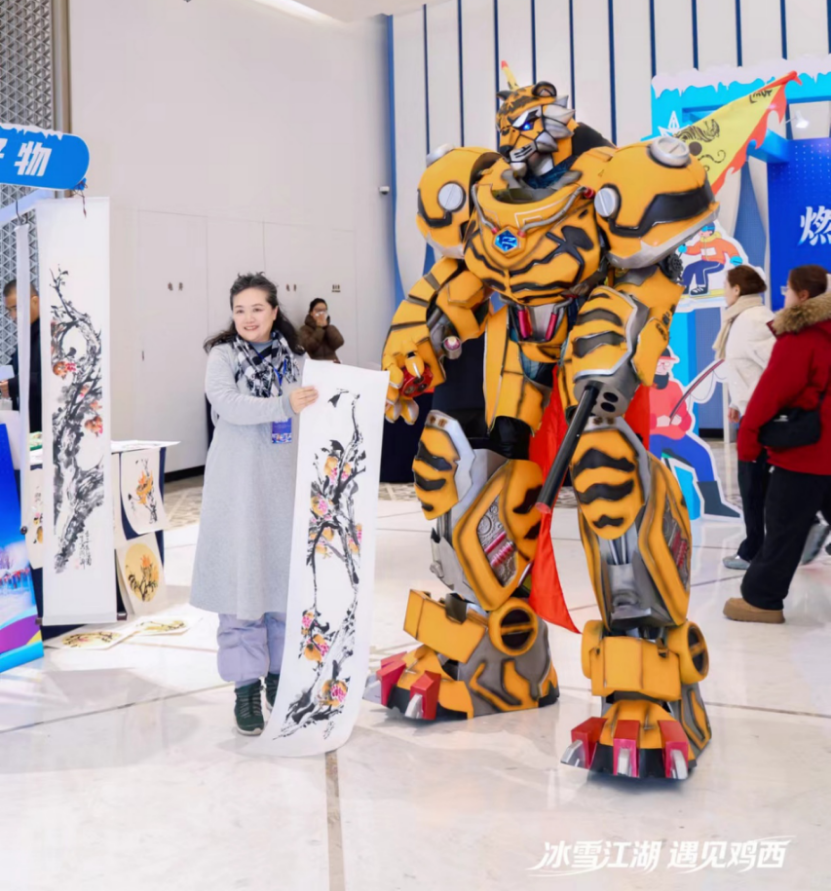 场外各区县展位各具特色,构建起集“特色展示+互动体验+打卡传播”于一体的多功能文旅空间,不仅有老虎机甲和“吉米虎”玩偶与嘉宾互动,还有特色美食品尝,让与会嘉宾在看、听、尝中沉浸式感受鸡西魅力。