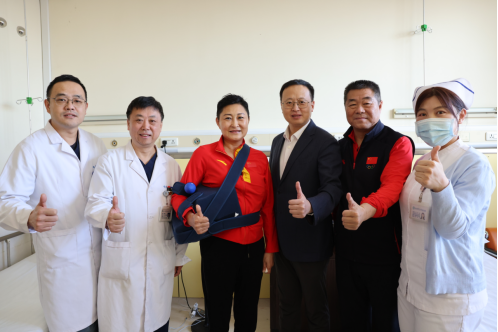 姚伟丽出院前夕,哈医大二院党委书记王洪亮前来看望。