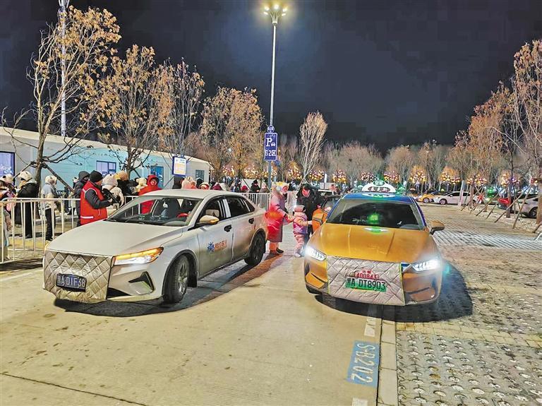 夜幕降临,冰雪大世界外,出租车整齐排队候客,执法人员在现场巡查监管。“以前听说有些地方打车难、乱要价,这次来哈尔滨,发现出租车都很规范,打表计费,司机师傅还热情地给我们介绍景点。”来自广东的游客李先生说。