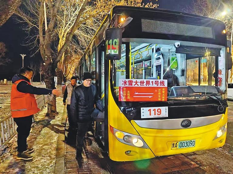 清晨的中央大街,游客熙熙攘攘,公交站台前秩序井然。“现在坐公交去冰雪大世界太方便了,不仅有专线直达,末班车还延长了,玩到很晚也不用担心回不去。”来自浙江的游客王女士笑着说。