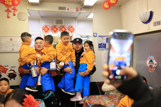 当日,乘警赵威华早早在站台等候研学团,接过师父邵万志的护航接力棒。三年前,邵万志因曾护航研学活动与孩子们结下情谊,此次因工作安排,委托徒弟先行守护。赵威华细心引导孩子们有序登车、安放行李,旅途中化身“临时家长”,反复巡查车厢、叮嘱安全事项,还主动参与列车为孩子们安排的包饺子、穿东北花袄等沉浸式体验活动,全程守护左右。